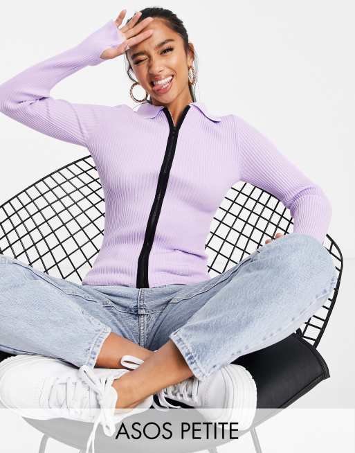 ASOS DESIGN Petite - Pull avec fermeture éclair et col - Lilas