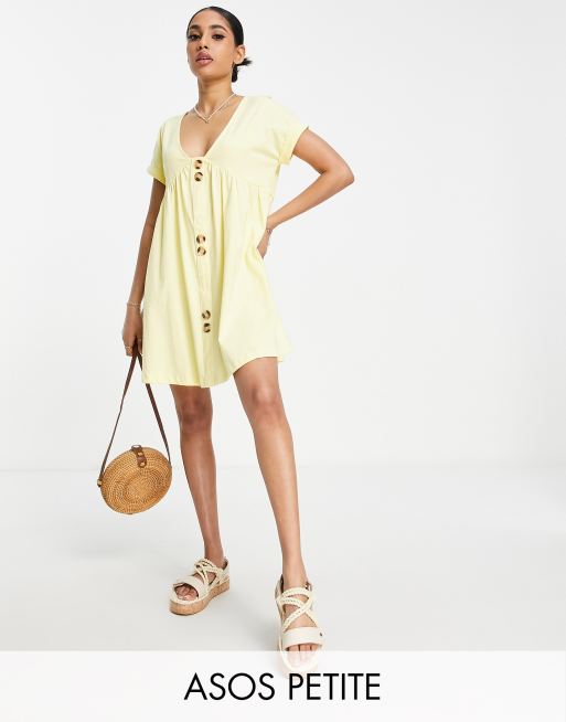 ASOS DESIGN Petite - Robe babydoll courte à gros boutons et manches courtes - Citron