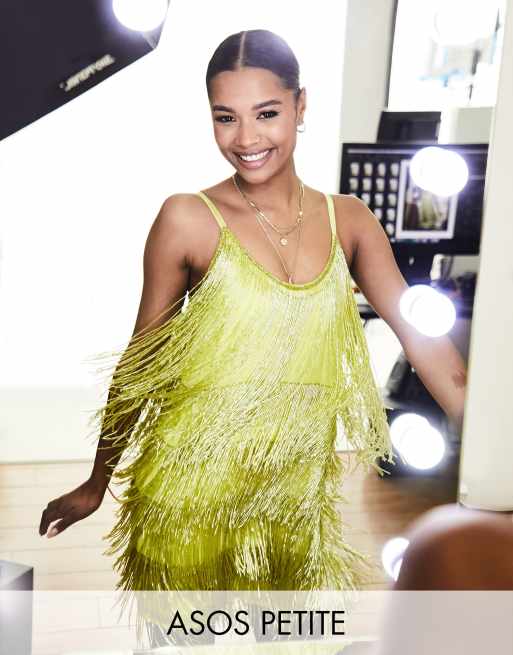 ASOS DESIGN Petite - Robe courte à franges ornementées - Jaune