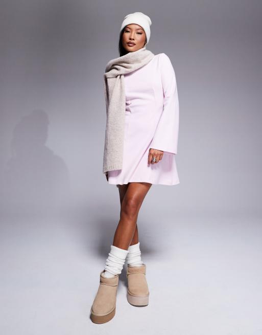 ASOS DESIGN Petite - Robe courte ajustée et évasée ultra douce à col montant - Rose