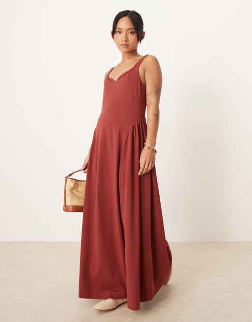 ASOS DESIGN Petite - Robe longue d'été - Rouille
