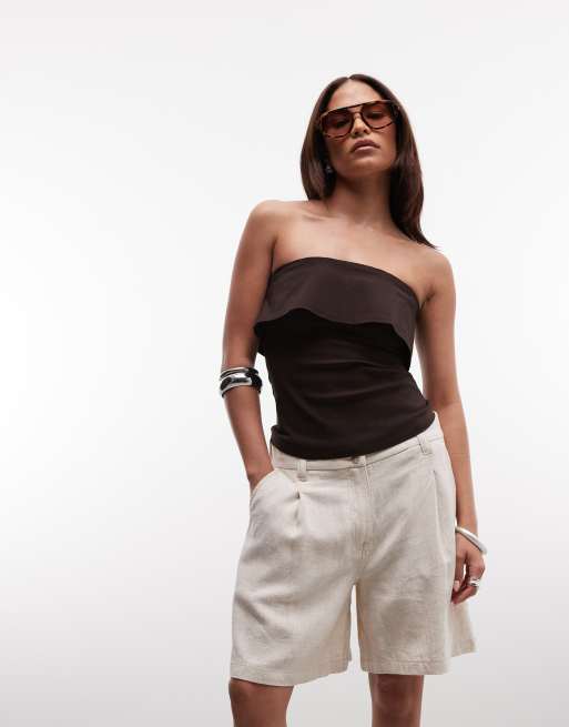 ASOS DESIGN Petite - Short dad en lin mélangé coupe décontractée - Naturel