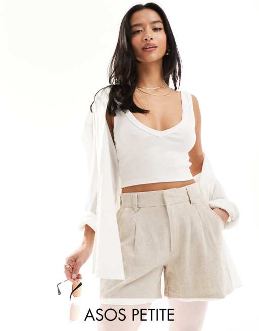 ASOS DESIGN Petite - Short dad en lin - Naturel
