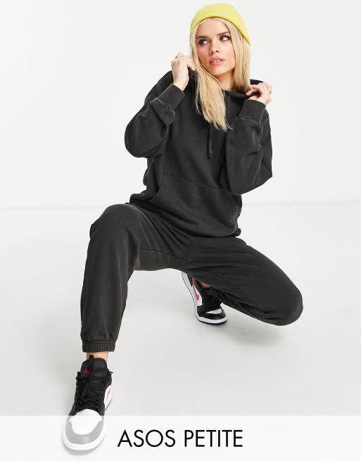 ASOS DESIGN Petite - Survêtement avec sweat à capuche et jogger - Anthracite délavé