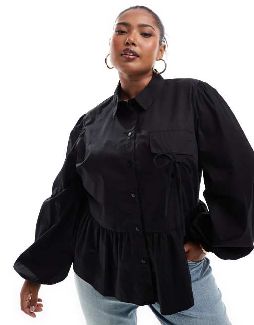 ASOS DESIGN Petite - Top smocké à manches bouffantes volumineuses - Noir
