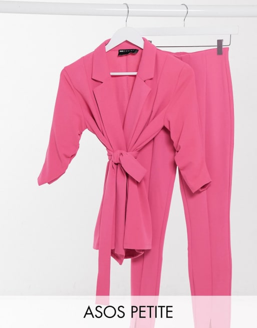 ASOS DESIGN Petite - Veste de tailleur croisée en jersey - Magenta