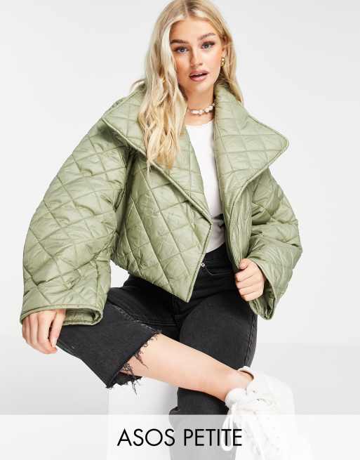 ASOS DESIGN Petite - Veste matelassée courte - Kaki