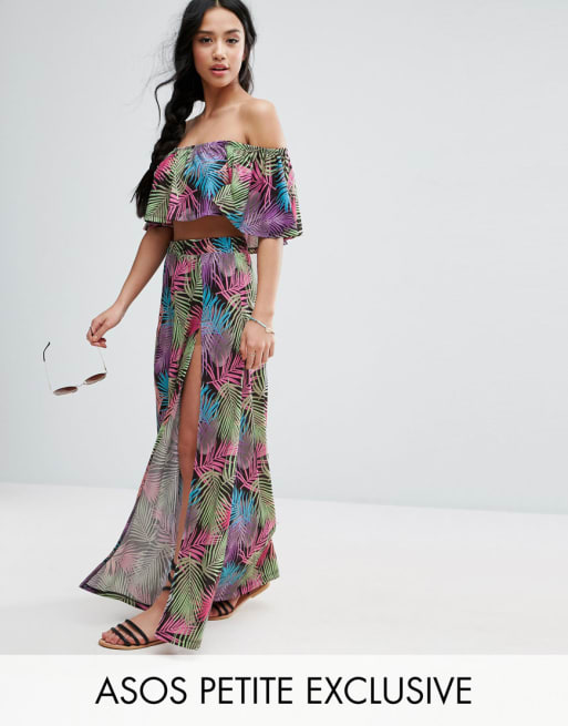 ASOS PETITE - Ensemble top et jupe de plage imprimé tropical