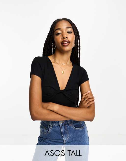 ASOS DESIGN Tall - Body manches courtes à corsage torsadé - Noir