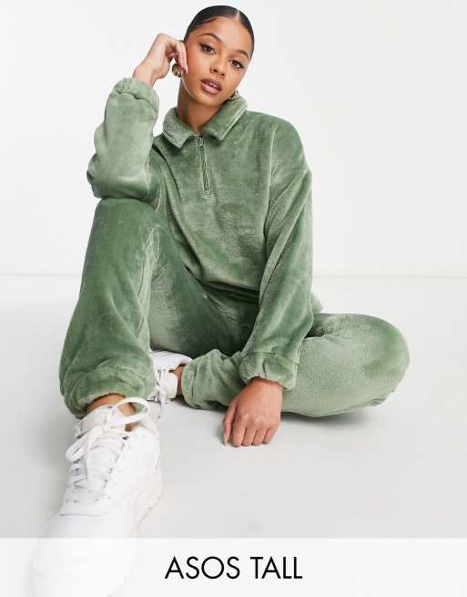 ASOS DESIGN Tall - Ensemble sweat zippé et jogger confort en polaire ultra-douce - Vert