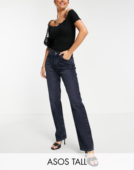 ASOS DESIGN Tall - Jean droit à taille basse - Noir bleu délavé
