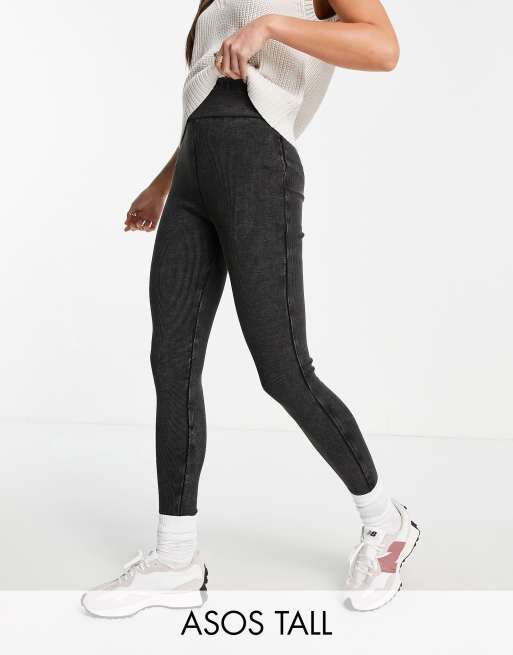 ASOS DESIGN Tall - Legging côtelé à taille haute - Noir délavé