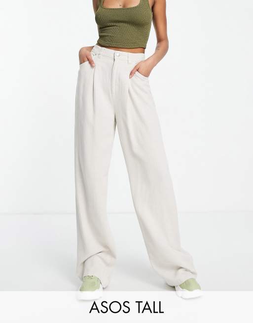 ASOS DESIGN Tall - Pantalon ample en lin - Grège