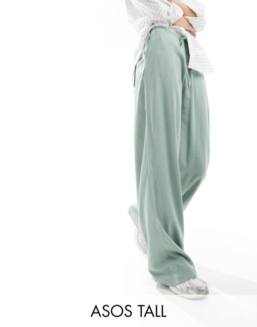 ASOS DESIGN Tall - Pantalon large à enfiler en lin mélangé - Vert
