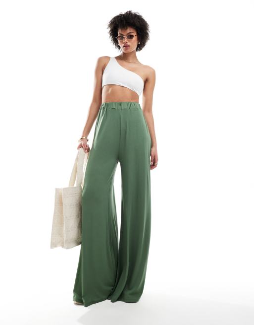 ASOS DESIGN Tall - Pantalon palazzo de plage en jersey - Kaki