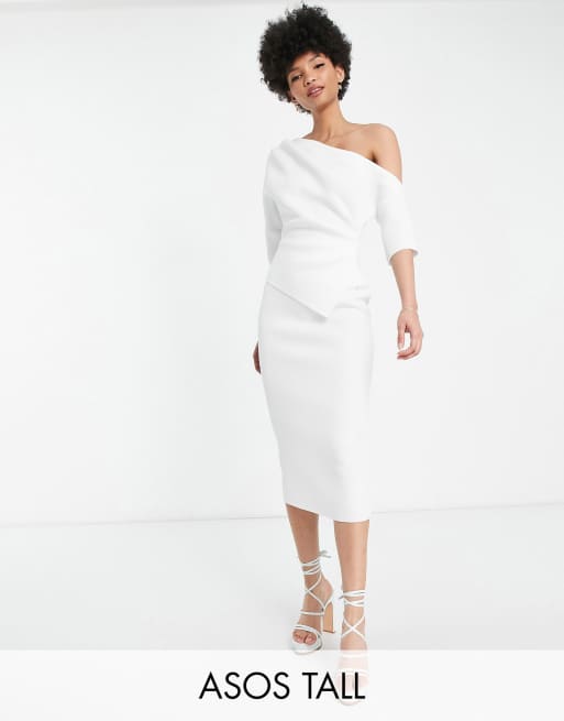 ASOS DESIGN Tall - Robe fourreau mi-longue avec chemise cache-cœur - Ivoire