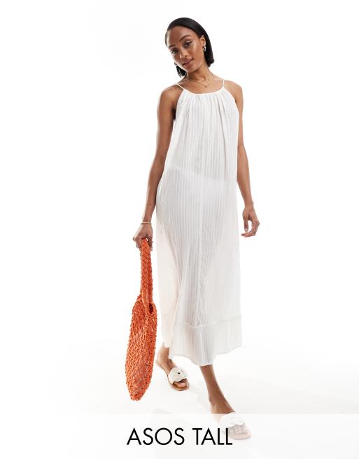 ASOS DESIGN Tall - Robe longue de plage en plumetis texturé à ourlet plongeant - Ivoire
