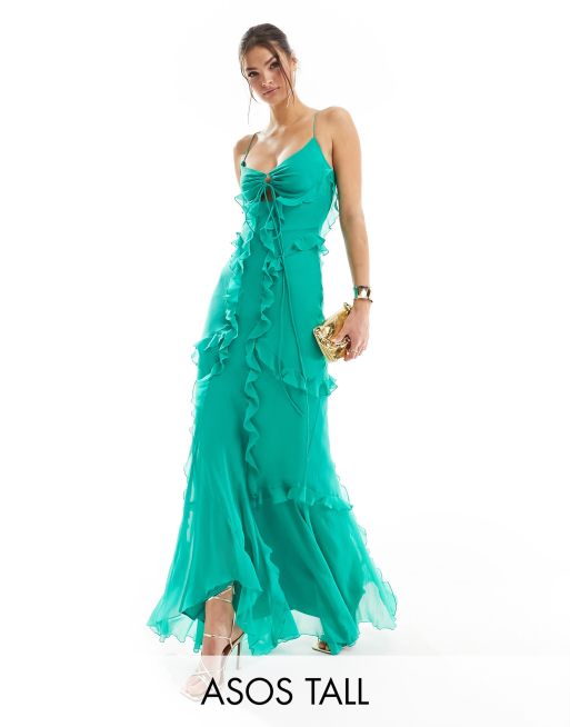 ASOS DESIGN Tall - Robe longue dos nu à volants et découpe - Vert