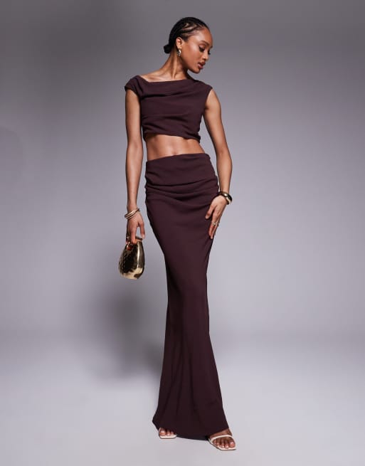 ASOS DESIGN Tall - Robe longue effet ensemble à épaules dénudées - Chocolat