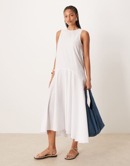 ASOS DESIGN Tall - Robe longue et sans manches à taille basse - Blanc
