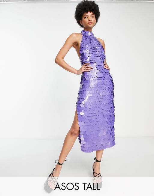 ASOS DESIGN Tall - Robe mi-longue à col montant et sequins circulaires - Violet