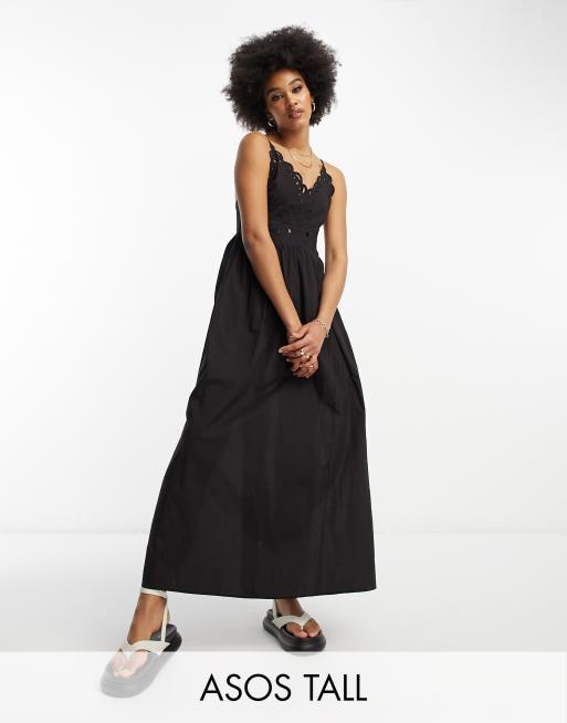 ASOS DESIGN Tall - Robe patineuse mi-longue à détails ajourés - Noir