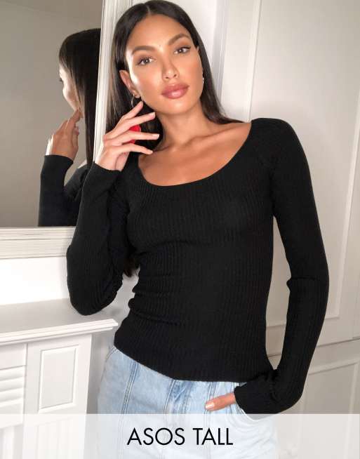 ASOS DESIGN Tall - Top manches longues àencolure dégagée