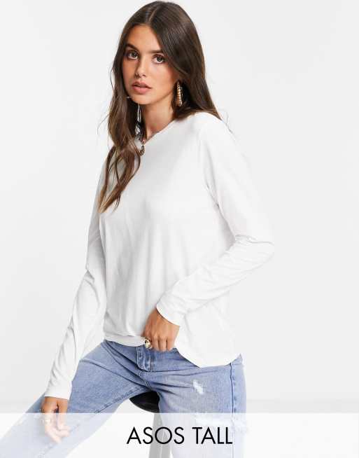 ASOS DESIGN Tall - Ultimate - T-shirt à manches longues en coton mélangé - Blanc - WHITE