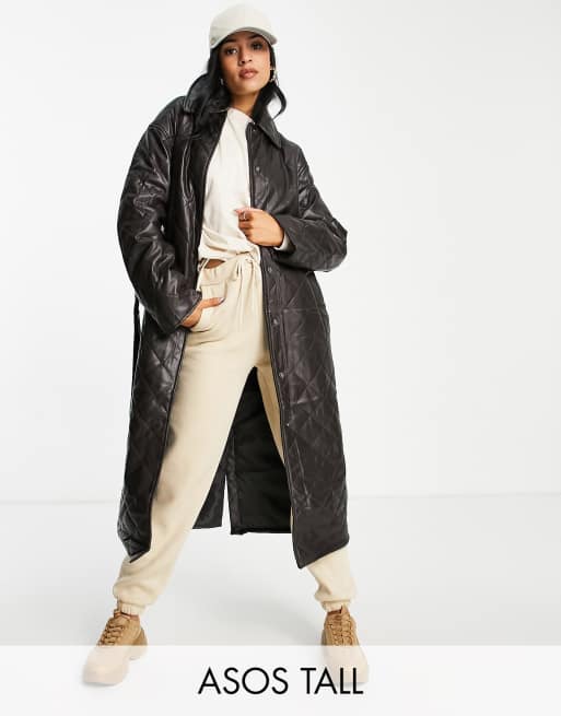 ASOS DESIGN Tall - Hero - Trench-coat imitation cuir matelassé - Marron
