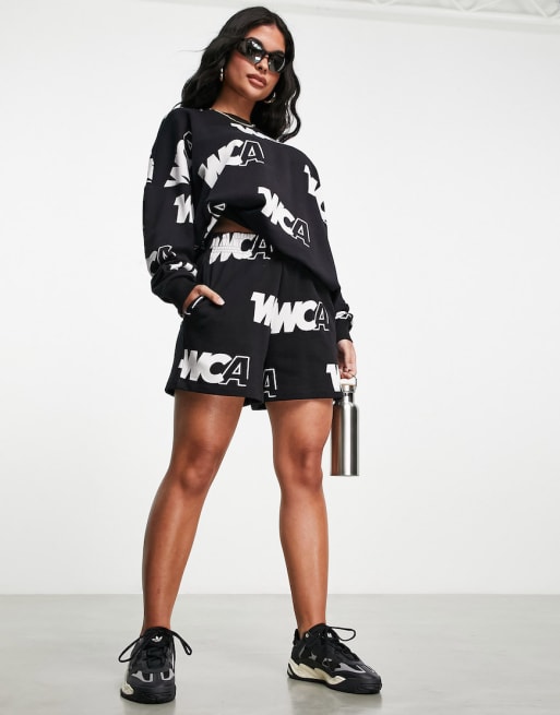 ASOS - Weekend Collective - Ensemble avec sweat coupe carrée et short à monogramme - Noir