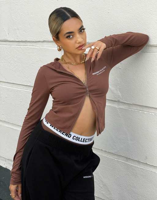 ASOS - Weekend Collective - Sweat à capuche ajusté à logo avec patte à glissière à double curseur - Marron