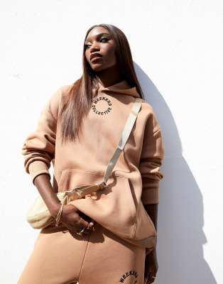 ASOS - Weekend Collective - Sweat à capuche d'ensemble avec logo rond brodé - Camel