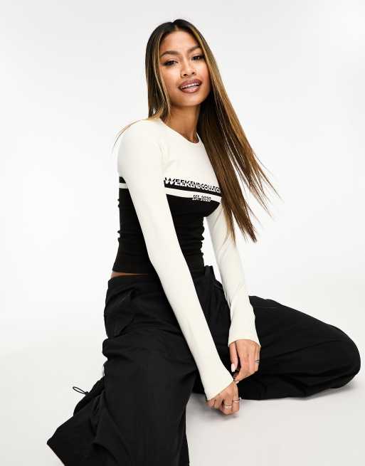 ASOS Weekend Collective - Top sans coutures à manches longues avec rayures et logo - Noir