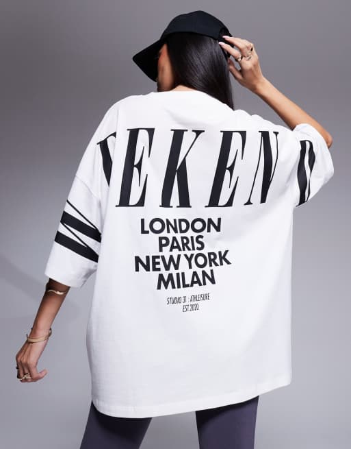 Weekend Collective - Icon - T-shirt oversize avec logo superposé au dos - Blanc