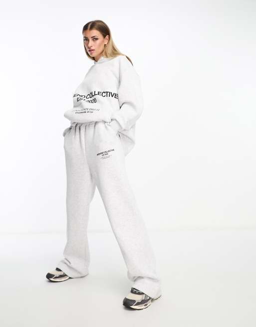 Weekend Collective - Pantalon de jogging oversize à logo superposé - Gris chiné