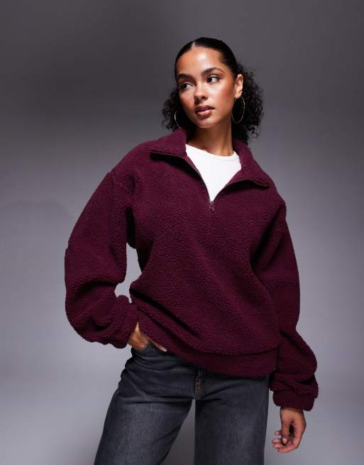 Weekend Collective - Polaire à fermeture éclair en imitation peau de mouton avec logo dévoré - Bordeaux