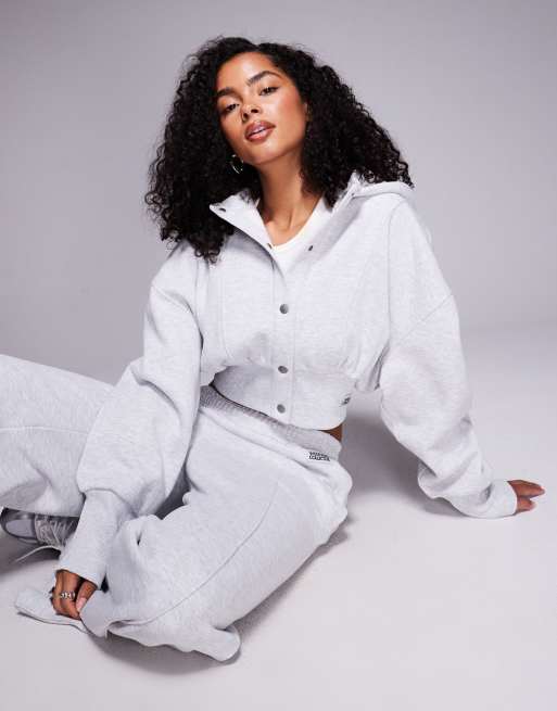 Weekend Collective - Sweat à capuche à boutons-pression avec taille cintrée - Gris chiné