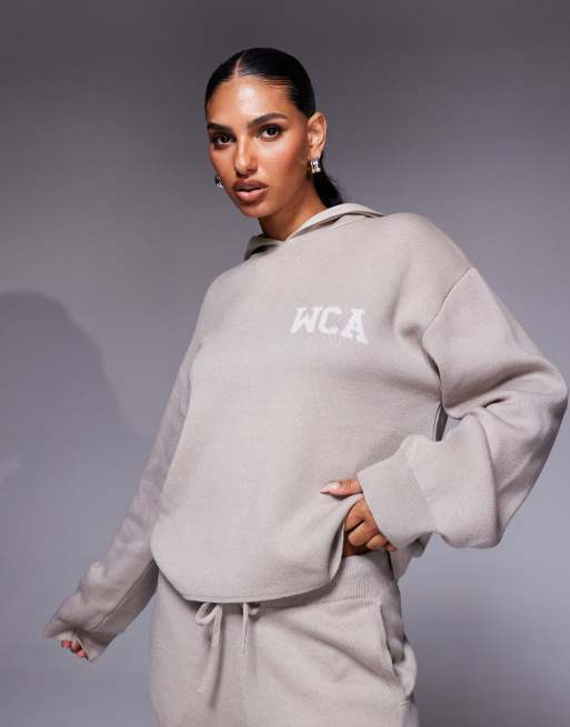 Weekend Collective - Sweat à capuche d'ensemble en maille avec imprimé graphique - Beige
