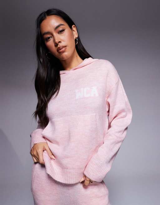 Weekend Collective - Sweat à capuche d'ensemble en maille avec imprimé universitaire - Rose