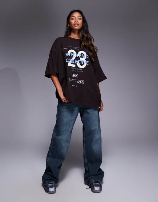 Weekend Collective - T-shirt oversize avec numéro et logo superposés - Chocolat