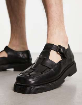 ASRA - Flint - Chaussures d'été en cuir avec barre en T - Noir