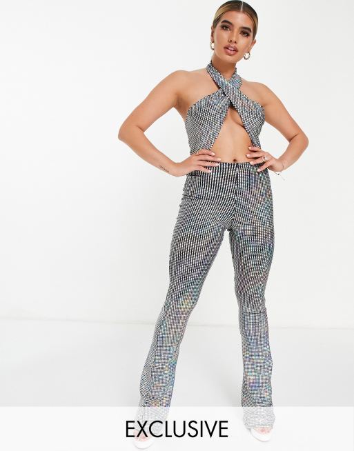 ASYOU - Combinaison croisée sur le devant ornée de sequins holographiques - Argenté