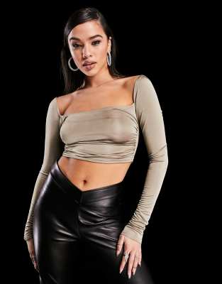ASYOU - Top près du corps froncé sur les côtés - Taupe