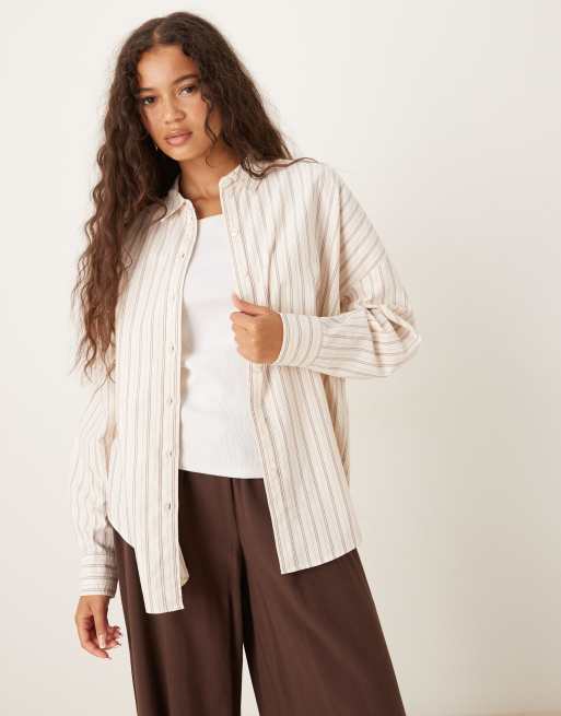 AWARE - Chemise Oxford oversize coupe boyfriend à rayures - Crème et bordeaux