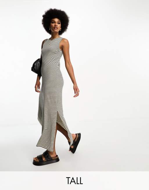 AWARE Tall - Robe longue sans manches à rayures - Noir et blanc