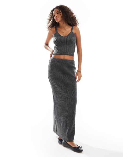 Vero Moda - Aware - Ensemble gilet, débardeur et jupe longue en maille épaisse - Gris foncé chiné