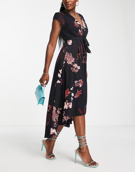 AX Paris - Robe cache-cœur mi-longue à imprimé fleuri - Bleu marine
