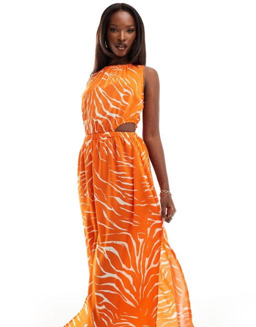 AX Paris - Robe sans manches mi-longue à imprimé zébré avec découpes - Orange