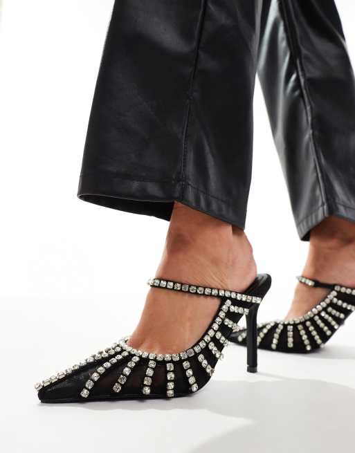 Azalea Wang - Arthelia - Mules à talon ornementées en tulle - Noir