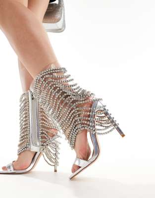 Azalea Wang - Taliah - Sandales effet cage à talons avec ornements - Argenté